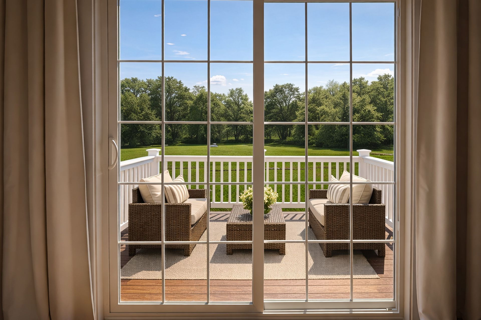 - Composite decks with white vinyl railings