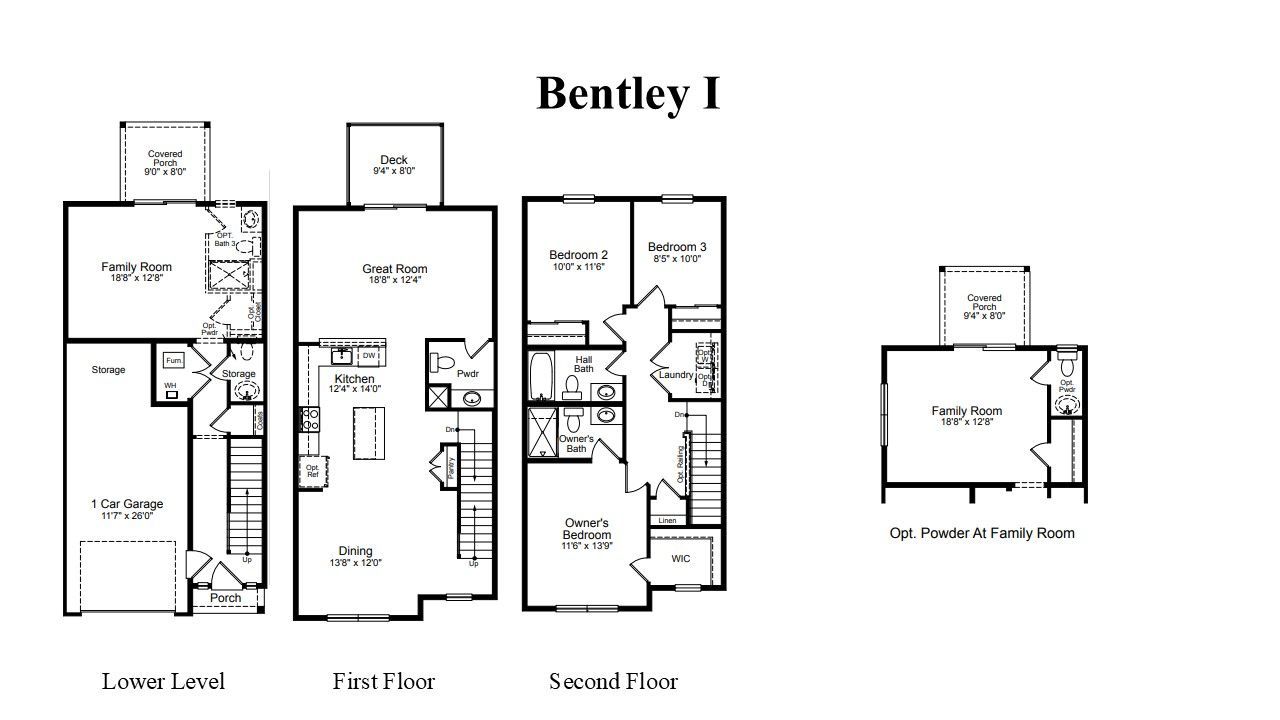 3 Story Townhomes with Family Room, Island Kitchen, Patio & Deck.